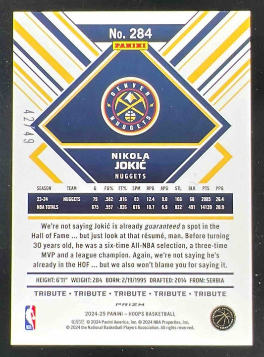2024-25 Panini Hoops Blue Prizm Premium #284 Nikola Jokic Hoops Tribute /49