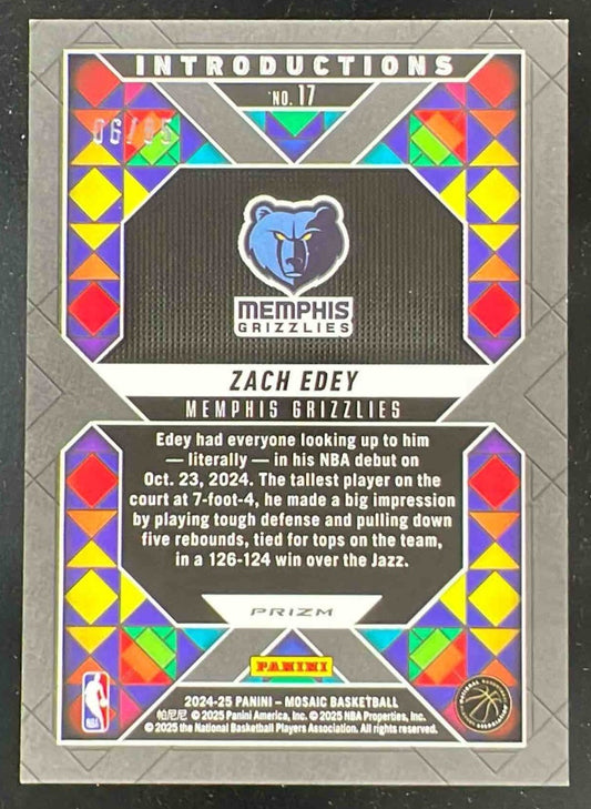 2024-25 Panini Mosaic Introductions Fast Break Blue Mosaic #17 Zach Edey RC /85