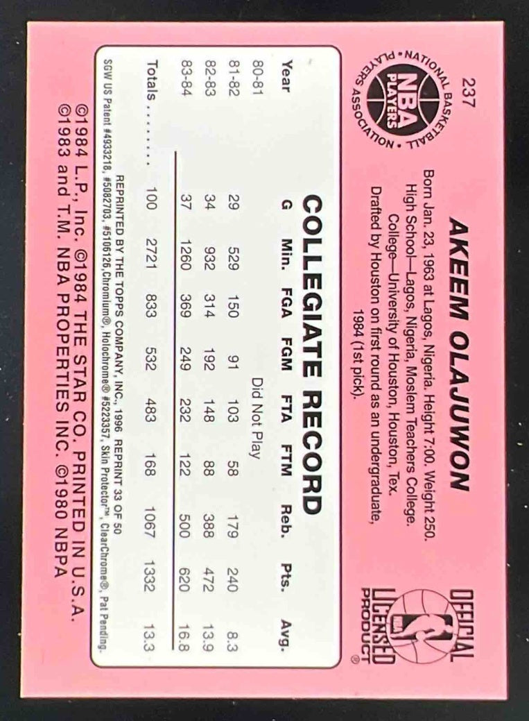 1996-97 Topps Finest Reprints #33 Akeem Olajuwon