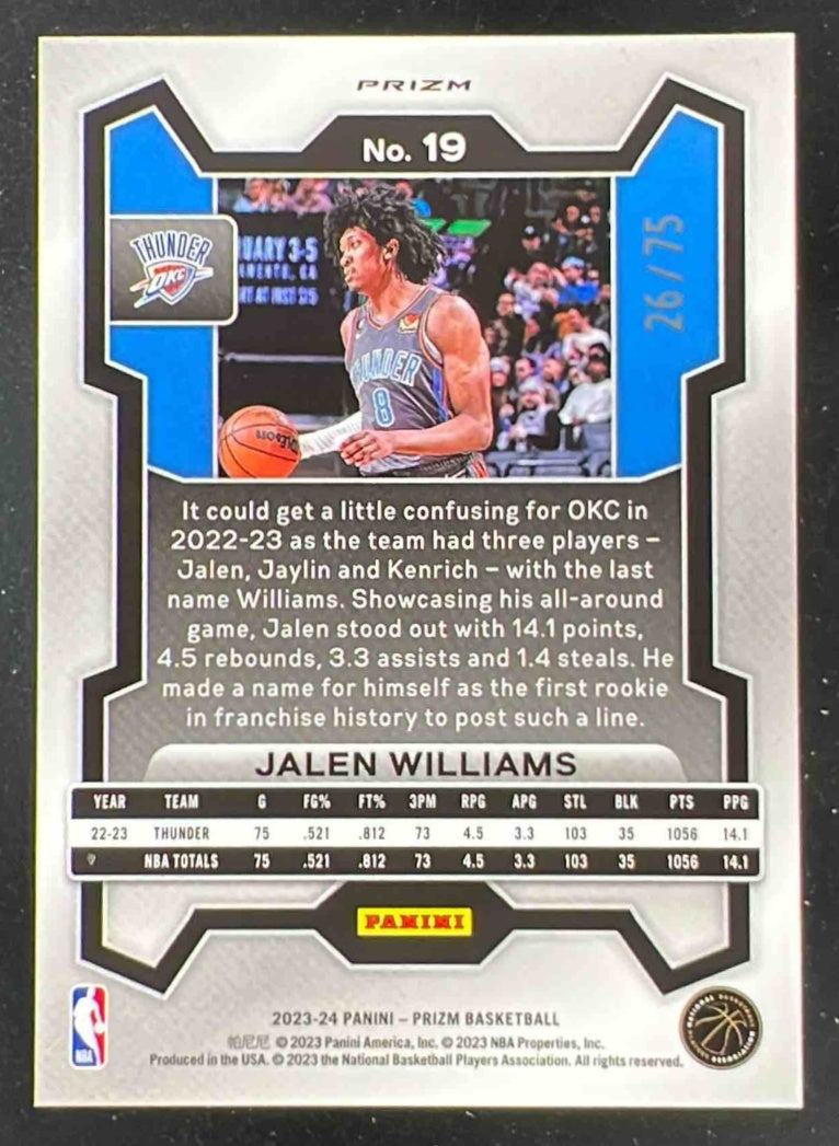 2023-24 Panini Prizm Prizms Fast Break Purple #19 Jalen Williams /75